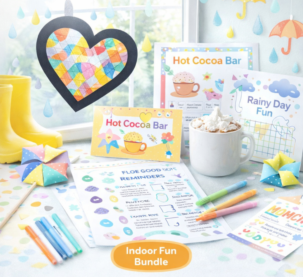 When the weather keeps everyone inside, Rainy Day Celebration turns a gray afternoon into something memorable. This bundle is designed to bring warmth, creativity, and a little sparkle to quiet days at home.From cozy crafts and playful activities to simple decorations that brighten the room, everything is made to help families slow down and enjoy time together. Just print, gather your supplies, and turn a rainy day into a celebration.