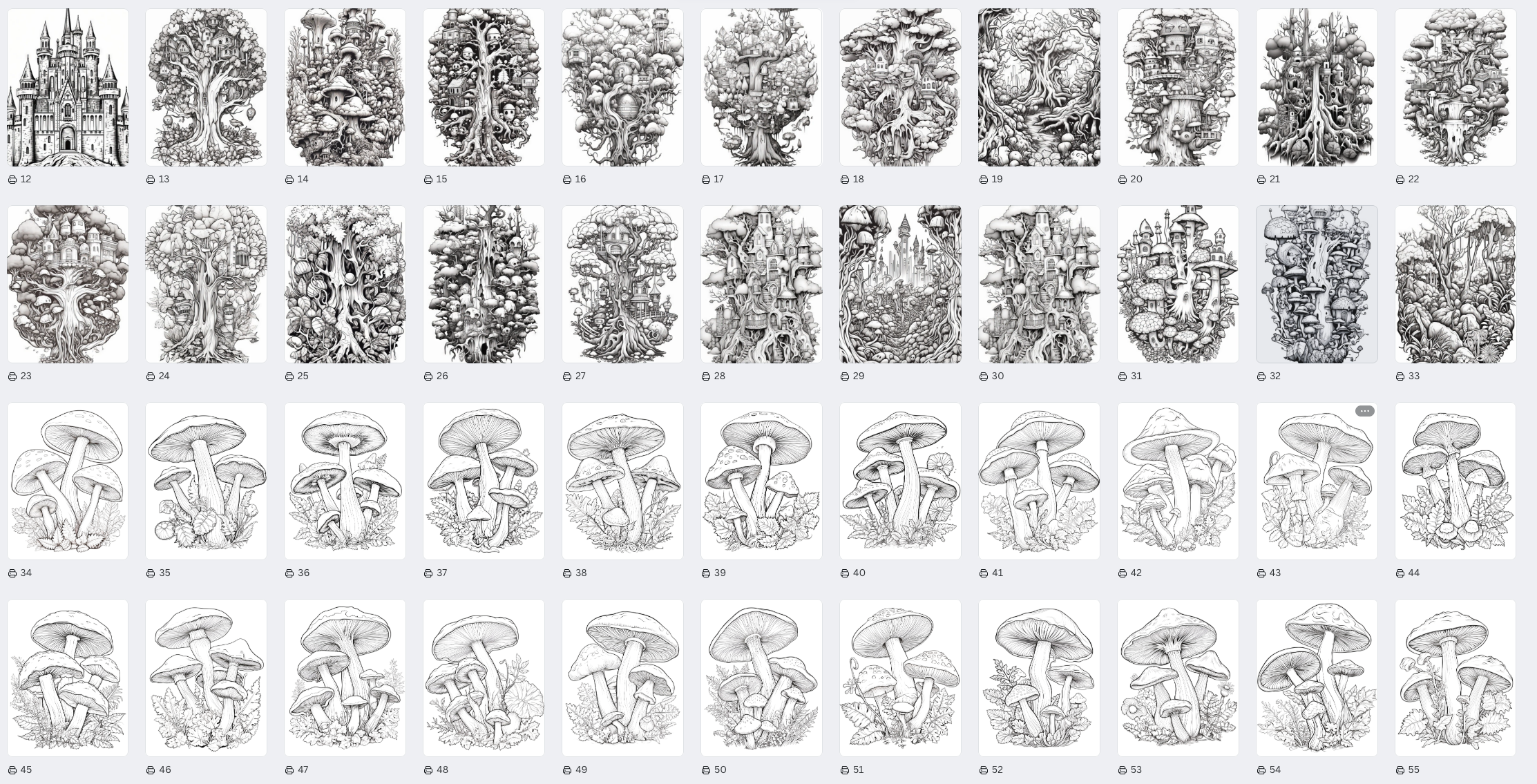 ✔ 196 unique forest and mushroom-themed coloring pages