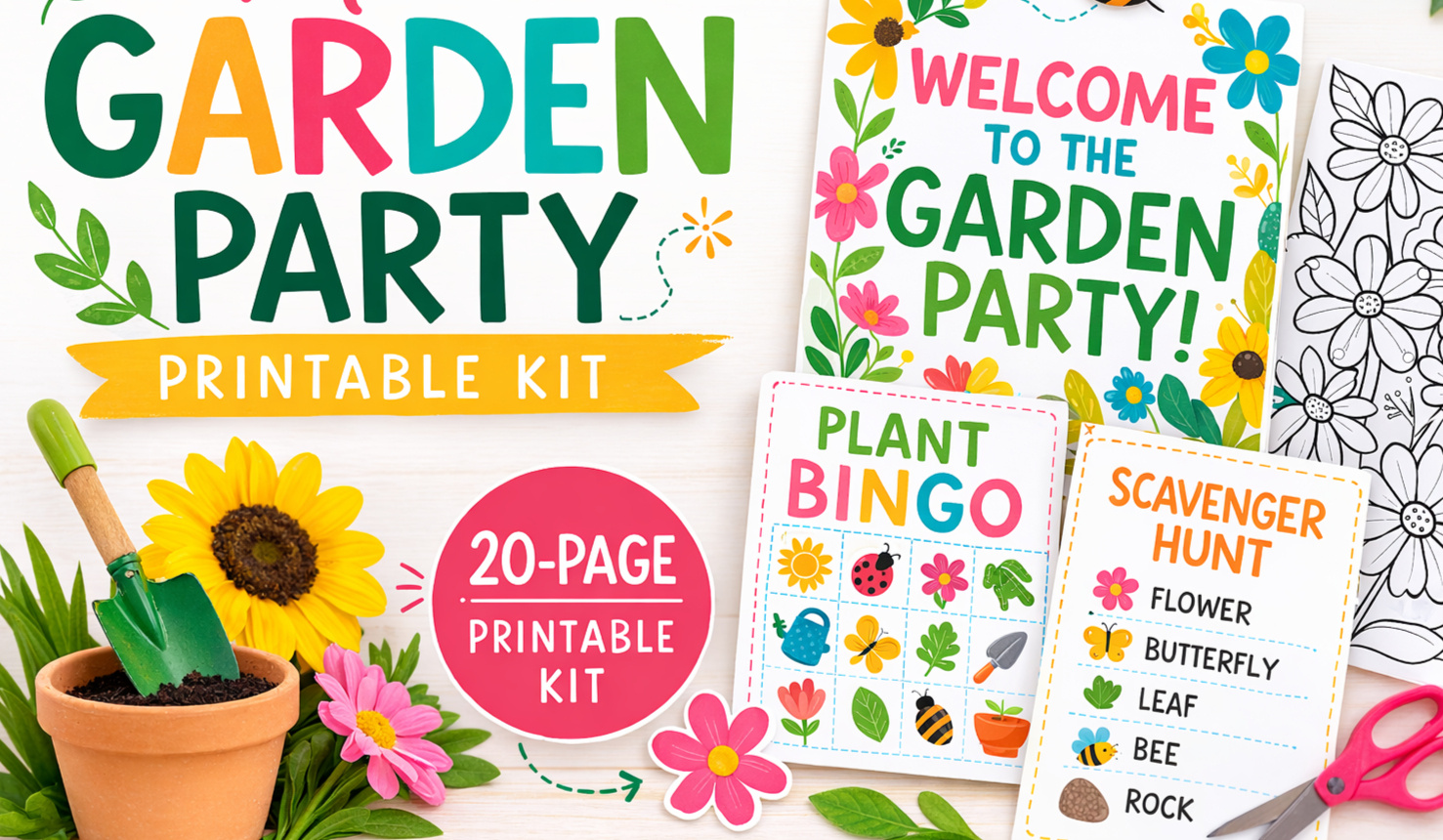 Includes: Garden signs, activity sheets, scavenger hunt, mini decorations, coloring pages
